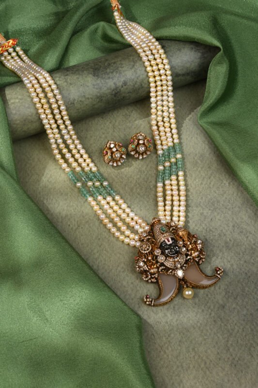 Classic Polki Pearl String Necklace with Temple Pendant