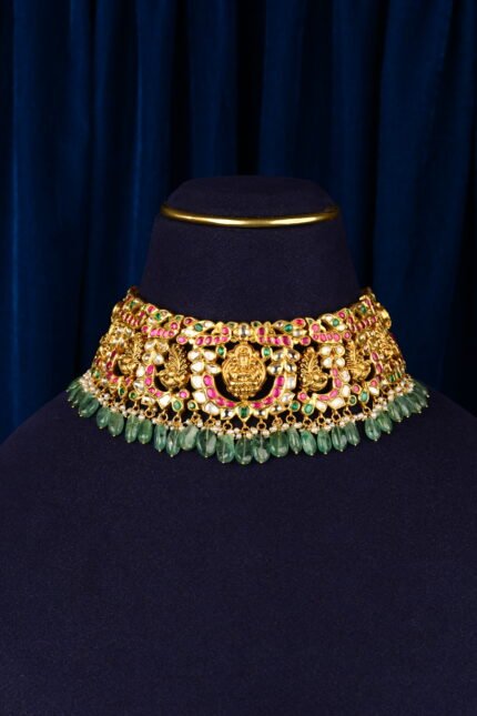 Antique Temple Kundan Necklace with Lakshmi Pendant