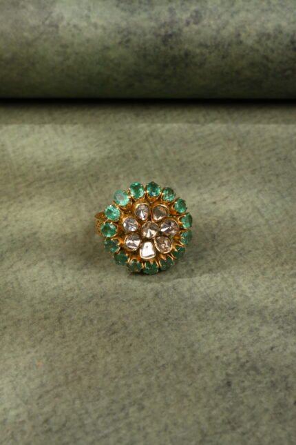 Floral Emerald Polki Heritage Ring